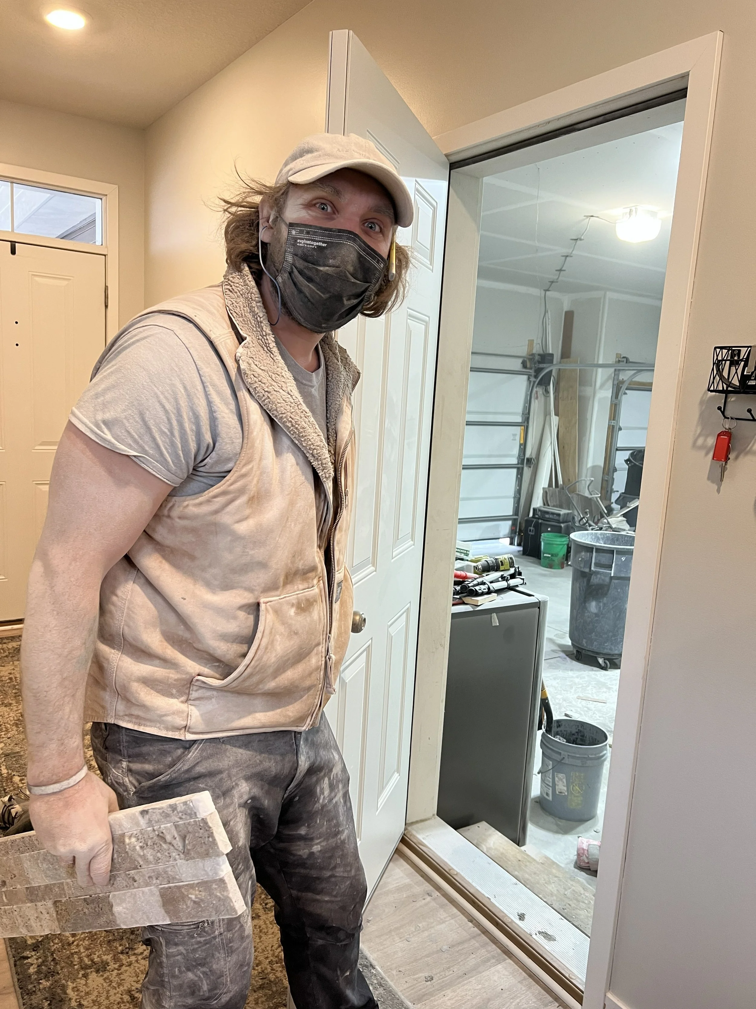 While these other projects took place, we narrowed down our ledger stone options and landed on either Triton II or Coastal Bluff from Floor & Décor. Our daughter loved the “sparkly” one and so we were easily swayed! We lived with the sample on our mantle for many months until our availability and budget finally lined up!